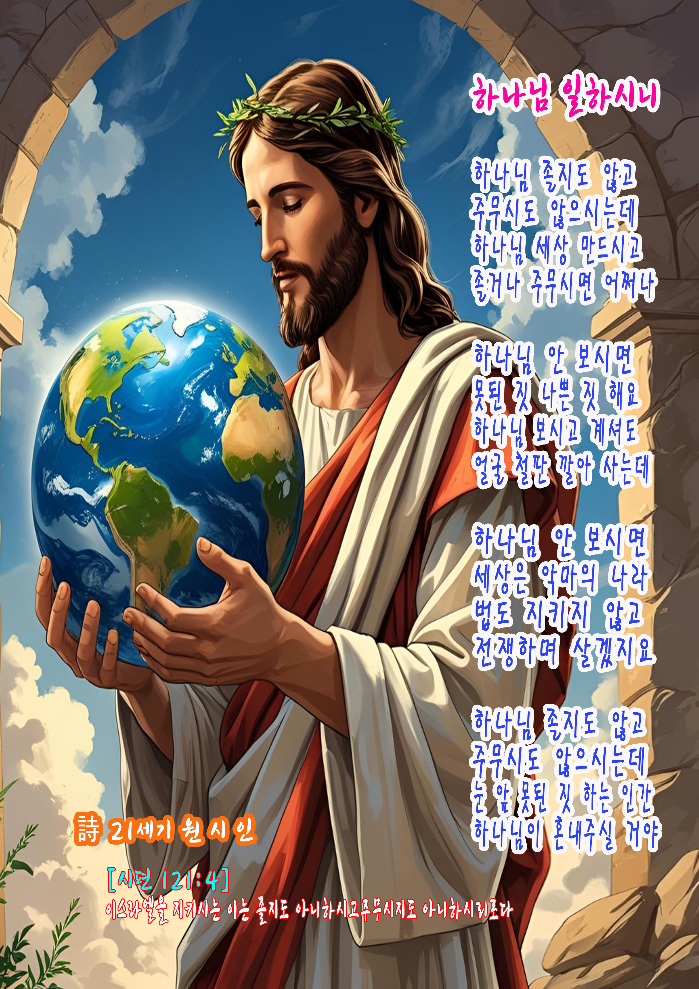 하나님은 졸지도 않고 주무시지도 않으시며 우리를 지키십니다. 사람이 보지 않는 곳에서 못된 일을 해도 하나님은 다 보고 계십니다. 만약 하나님께서 잠시라도 눈을 감으신다면 세상은 무법천지가 되고 맙니다. 그러나 하나님은 언제나 깨어 계셔서 악을 막으시고 우리를 보호하십니다. 그러므로 우리는 하나님 앞에서 두려움과 정직함으로 살아야 합니다.