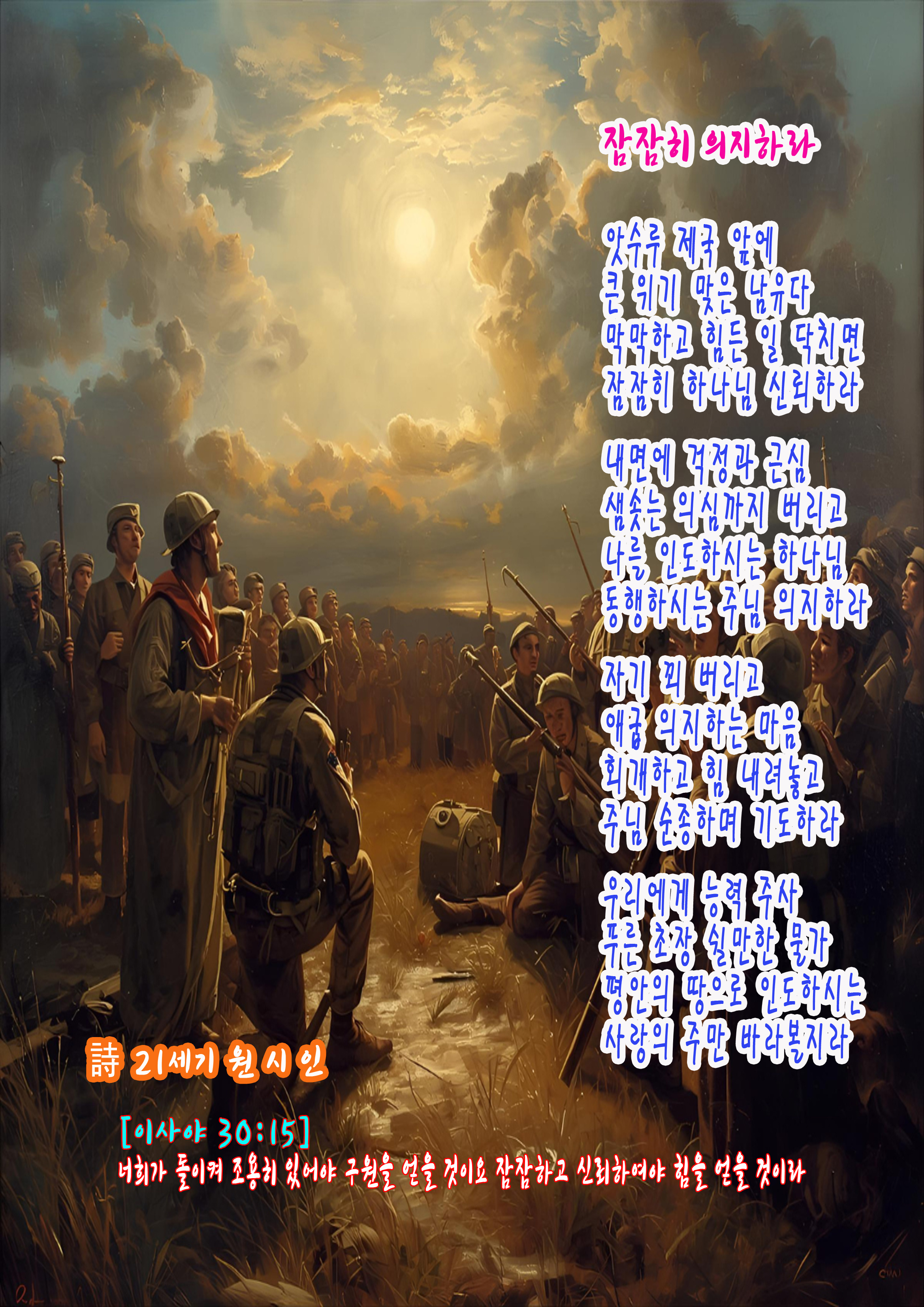 너희가 돌이켜 조용히 있어야 구원을 얻을 것이요 잠잠하고 신뢰하여야 힘을 얻을 것이라