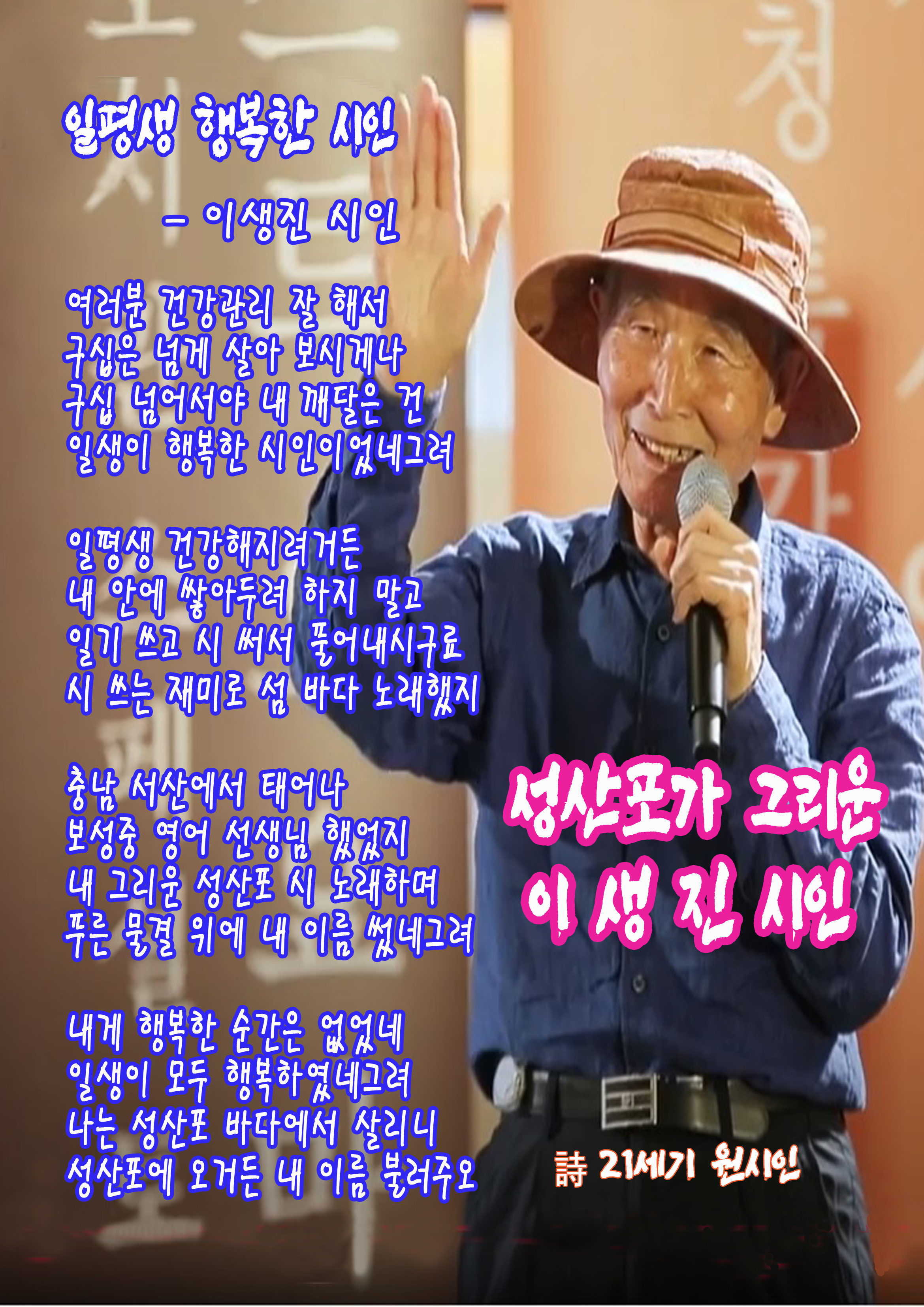 사진 출처: (510) 일생이 행복이었다 | 이생진 시인 | 별마당도서관 명사초청특강 - YouTube