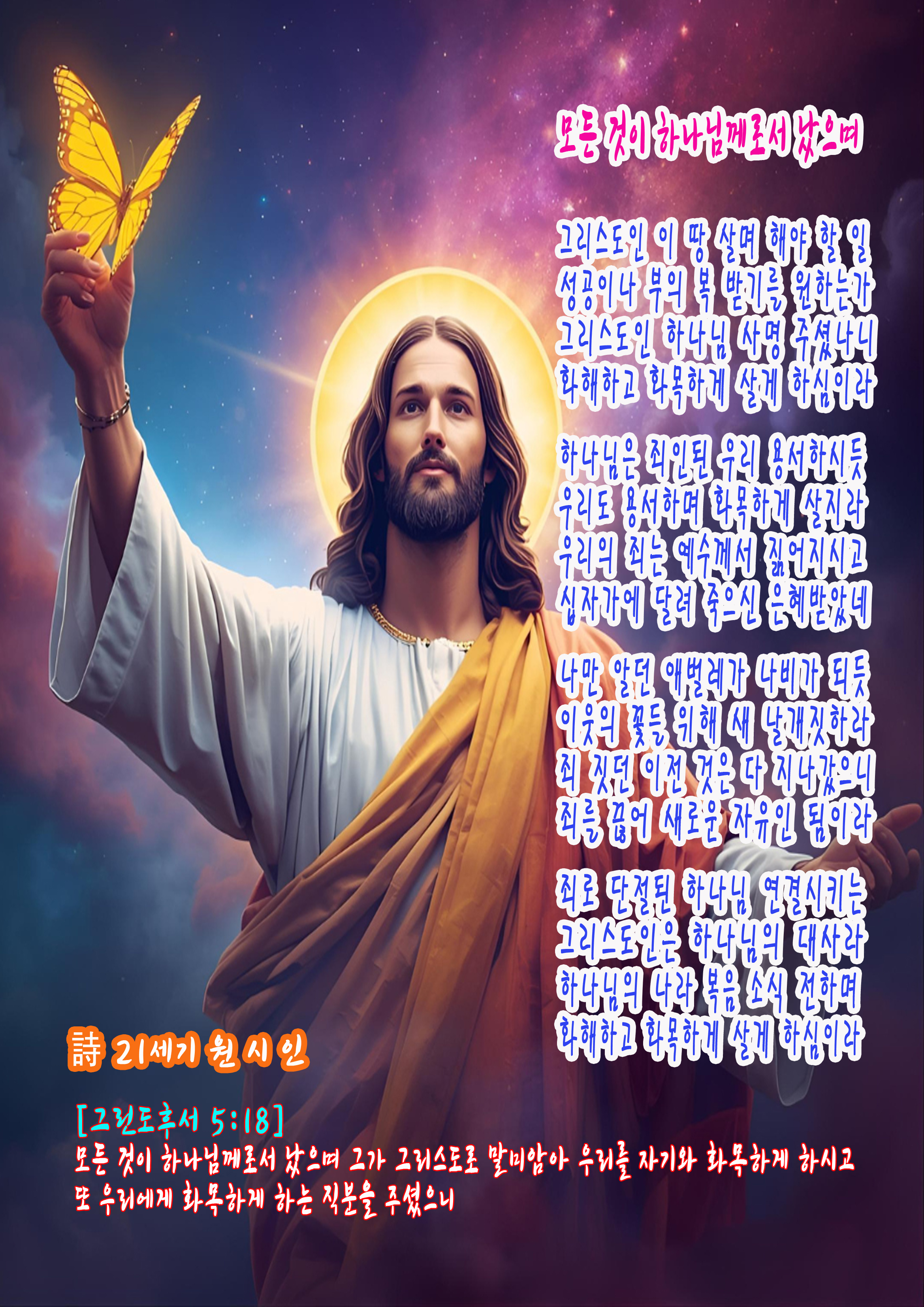 모든 것이 하나님께로서 났으며 그가 그리스도로 말미암아 우리를 자기와 화목하게 하시고 또 우리에게 화목하게 하는 직분을 주셨으니