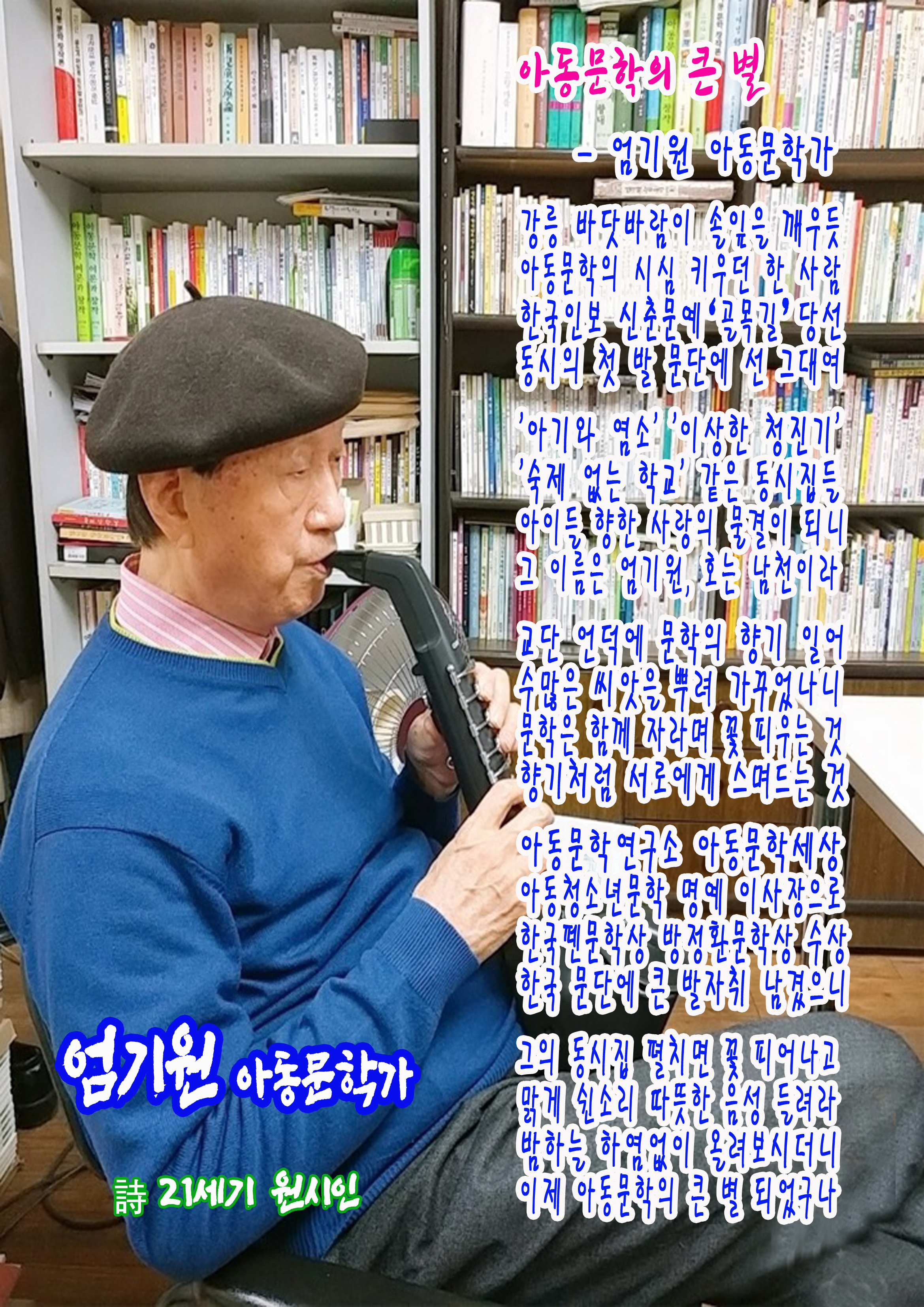 [아동청소년] 2025.10.14 엄기원 선생님과 청와대 방문 [추도시]아동문학의 큰 별-엄기원 선생님 아동문학세상의 선구자 엄기원 선생님 사랑의 시 어머니-김남조 시인 시 놀이터 살다 가노라- 김송배 시인 영원한 지성-이어령 교수 영원한 뽀빠이-이상용 MC 날 위해 울지 말아요-국민 엄니 김수미 천국노래자랑-MC 송해 선생 금아 피천득 시인
