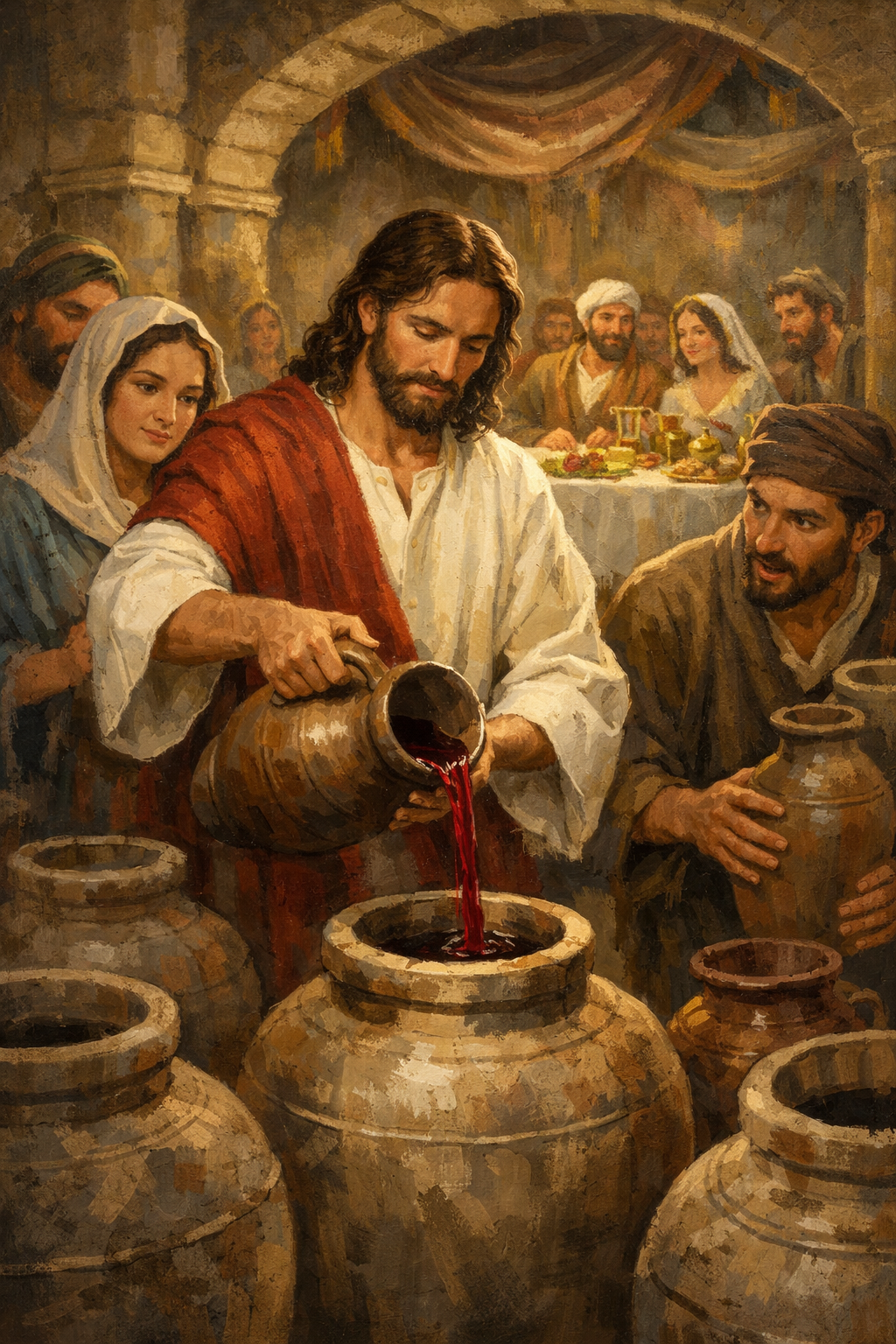 예수께서 하인에게 물 채우라