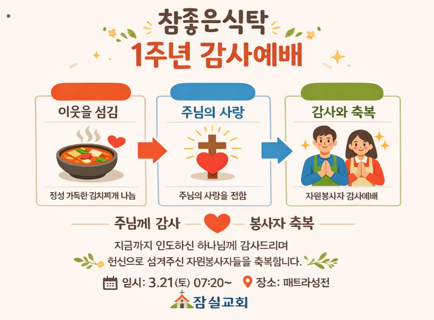[잠실교회] 2026.3.28 [잠실교회]참 좋은 식탁 개업 예배